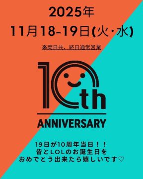 〇15日(土) LOL 10th Anniversary Party🎉